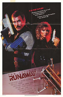 Written and directed by Michael Crichton, Runaway features Magnum P.I. matching wits with robots and a makeup free Gene Simmons. It even has Kirstie Alley when she was still hot, you know before she unhinged her lower jaw and swallowed half of southern California. Unfortunately, these attributes weren't enough to top another man vs robot film from the same year - The Terminator.
